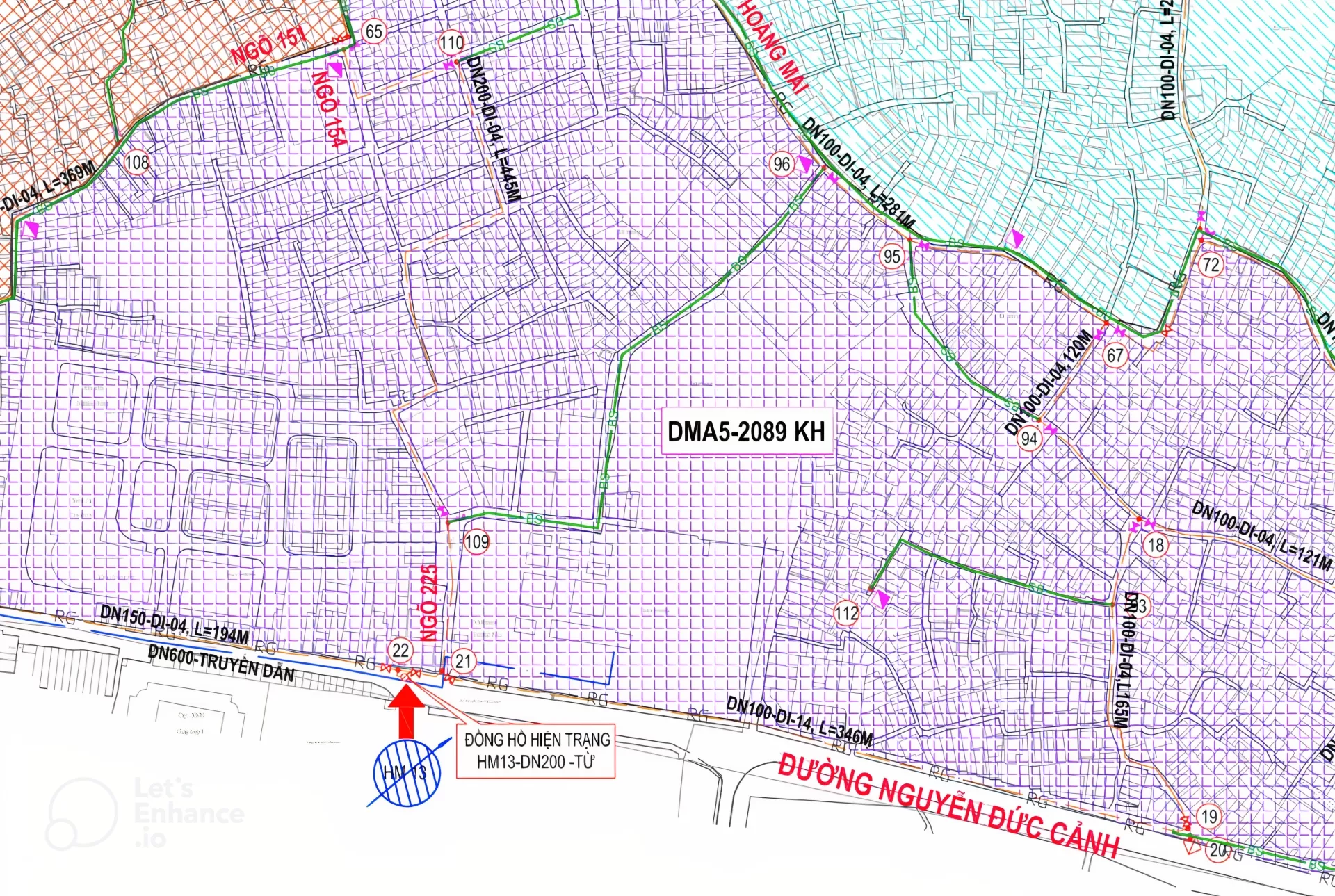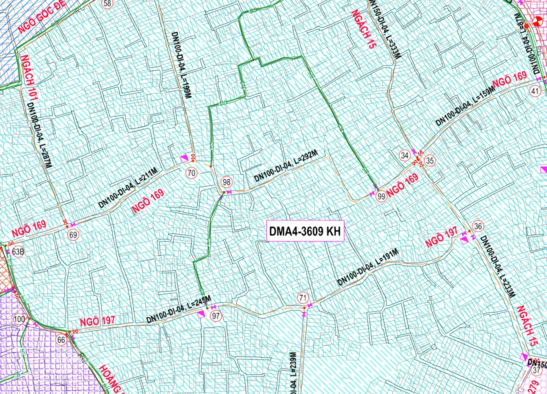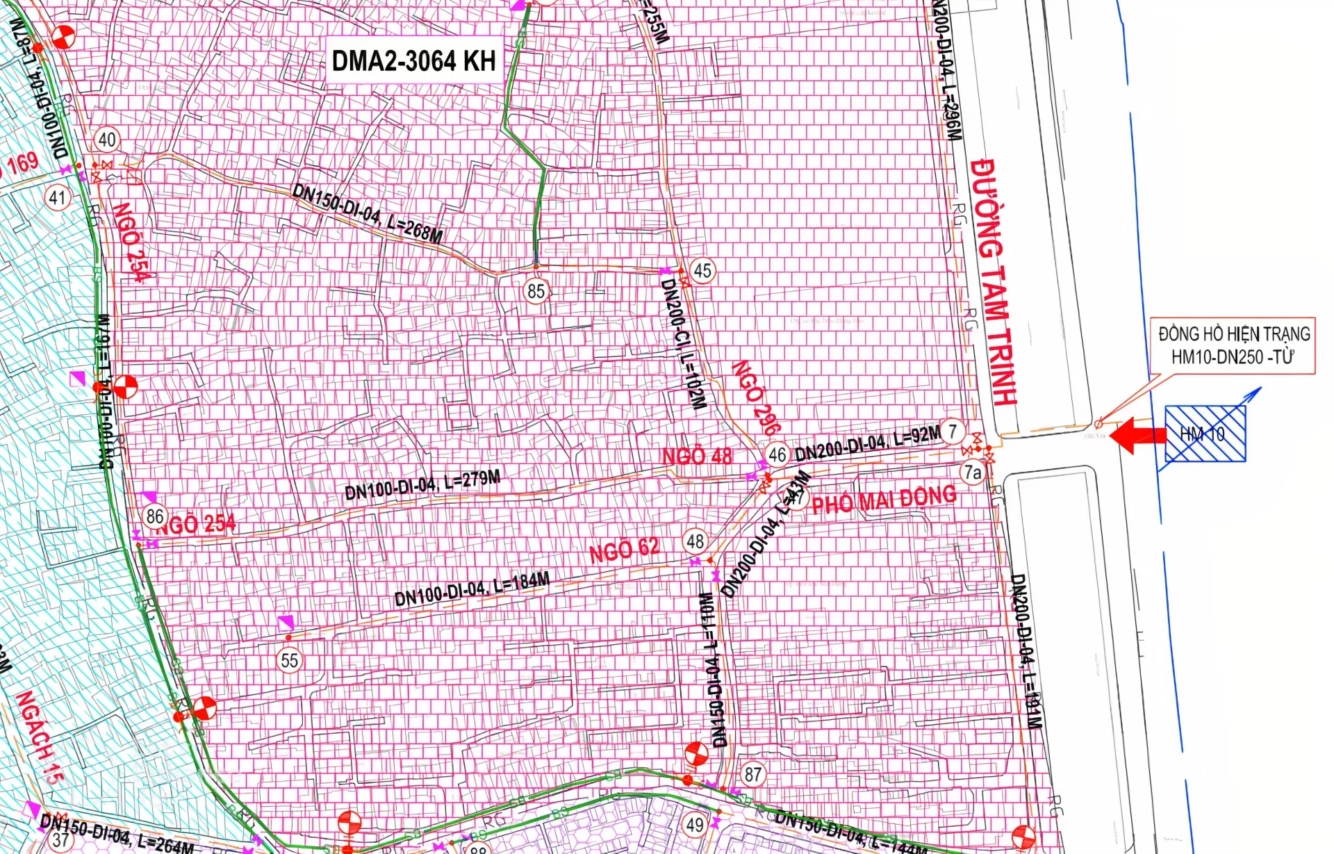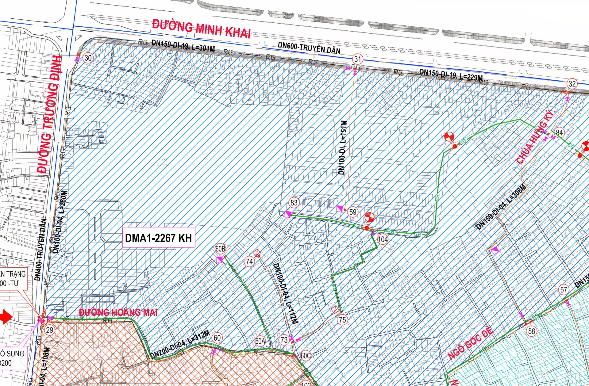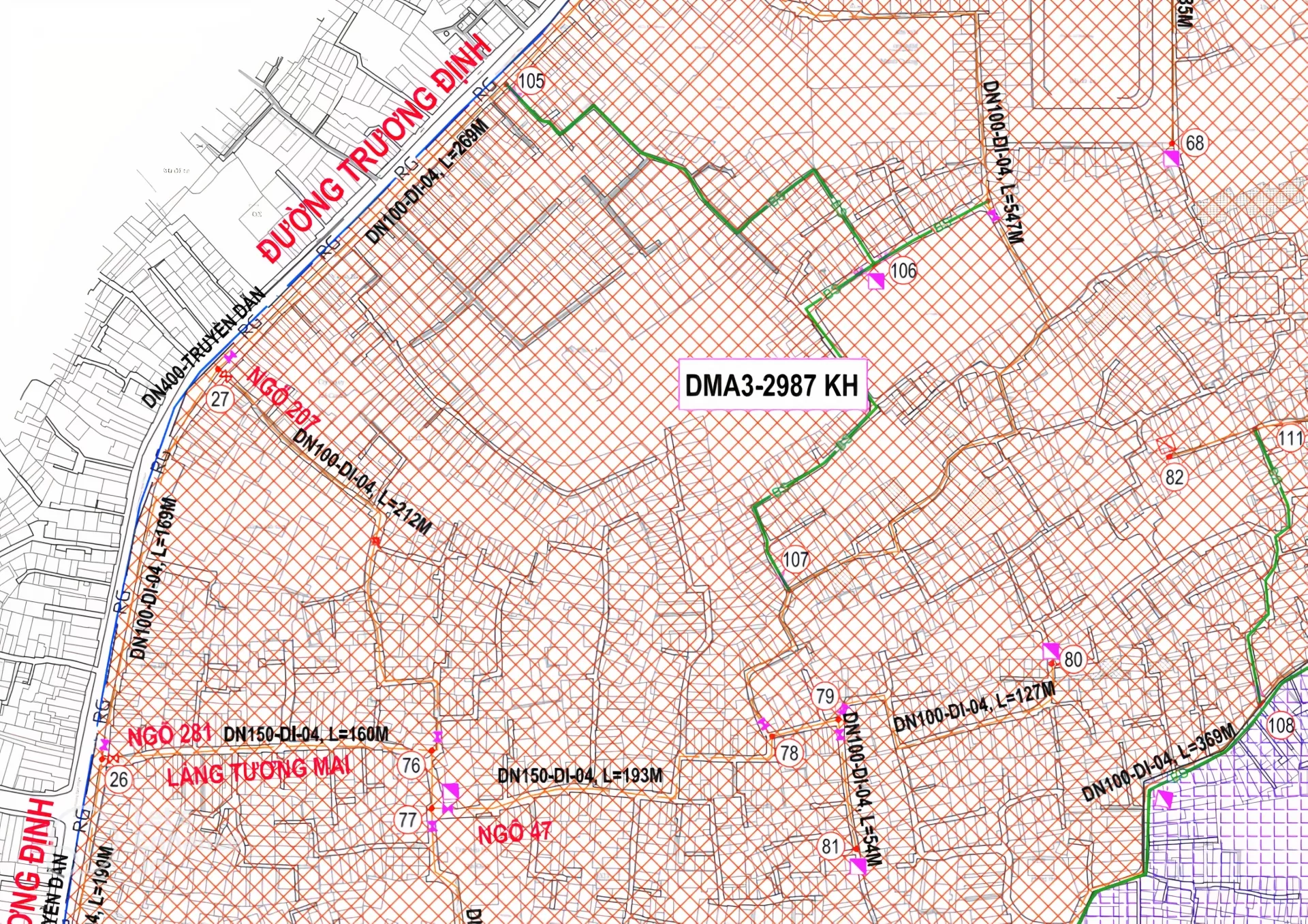 - Di chuyển tuyến ống: DN150-DN400-DI; L=0,773 km.